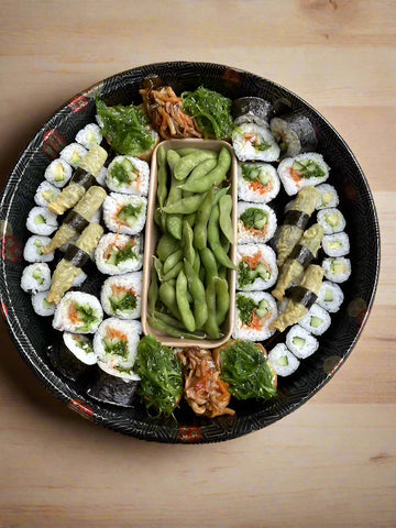 Our hand made Vegan Sushi Roll Platter offers fresh, tasty plant-based sushi, perfect for corporate events and meetings. It suits diverse diets and adds a professional touch to your catering.