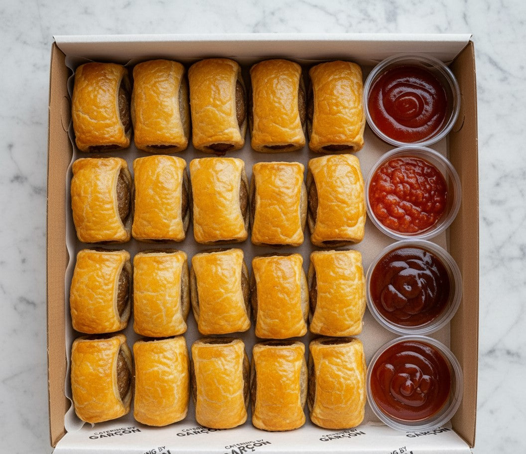 Gourmet Sausage Rolls  with Taomoto Relish 1 and Bbq Sauce