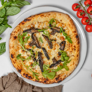 - Truffle Cream Cheese, Fresh Mozzarella, Porcini Mushrooms, Black Truffle Paste, Truffle Oil, Thyme, Aged Parmigian
